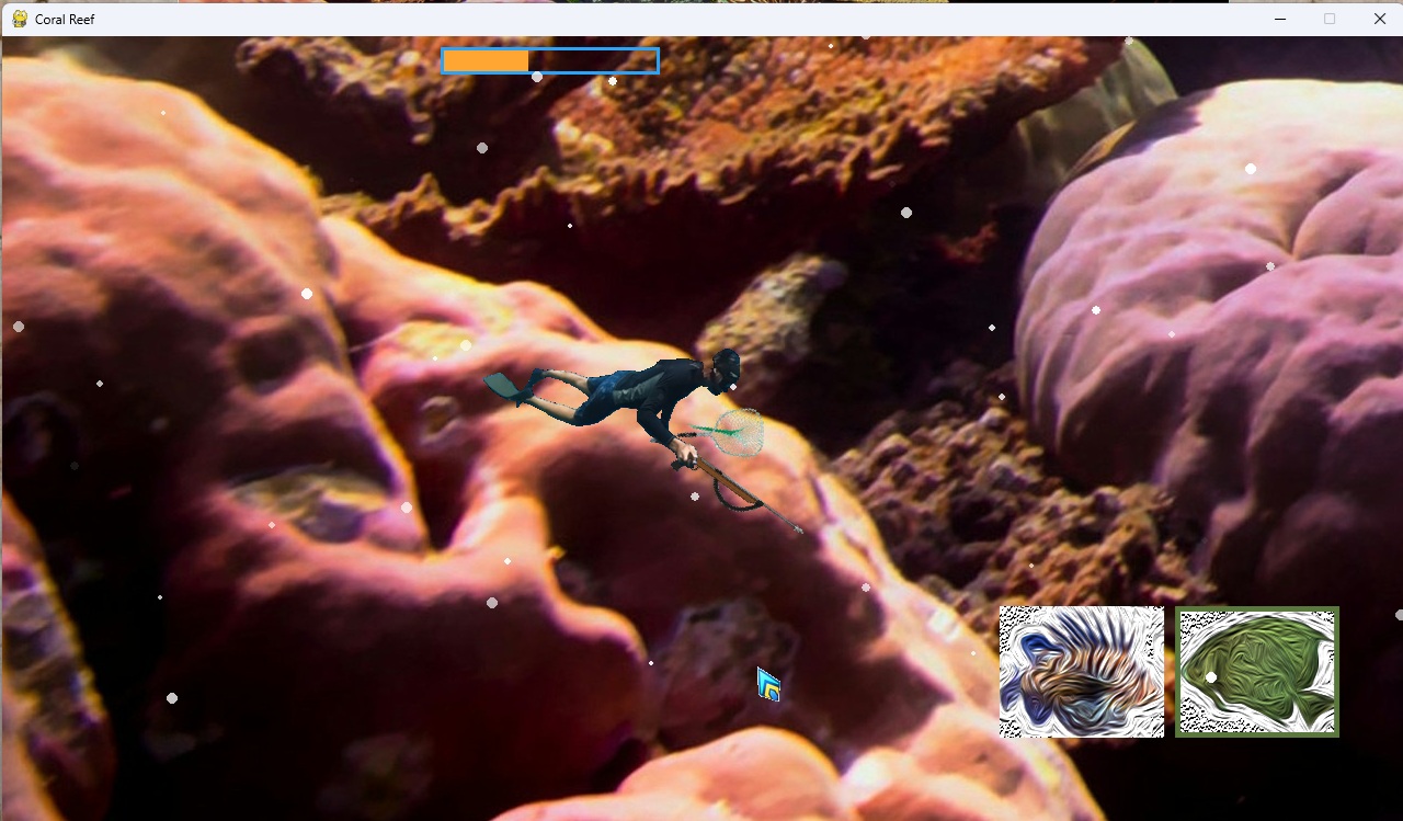 Each level starts with four short video clips of the creatures you will encounter in the level from my actual snorkeling experiences in the Florida Keys. All the sprites of the sea creatures are also extracted from the videos. You can see a video with all of them at: 25 Shoreline Sea Creatures of the Florida Keys